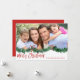 Feliz Cartão com fotos de Manhã de Natal com Letra de Script Garland. A foto e o texto deste script de pincel com letra manual podem ser atualizados e personalizados com sua foto e seu nome de família.