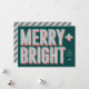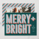 Este cartão de Natal festivo contém a frase "Feliz + Brilho" numa design tipográfica de inspiração clara de marca-passo. A vibrante paleta de cores acrescenta ao alegre apelo, fazer este cartão de feriado perfeito para famílias com crianças. A parte traseira da placa apresenta uma foto familiar amada com um quadro de padrão de faixa de coordenação, ou remova a foto e o quadro para revelar um padrão de stripe total.