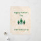 Um cartão perfeito para os filhos gêmeos darem Dia de as mães à mãe. Um fundo neutro com textura sutil. Crianças gêmeas e sua mãe com fonte verde coordenadora.