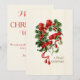 Cartão de Natal vintage personalizável que apresenta um osso de desejo decorado com sombra e bagas e uma fita vermelha.