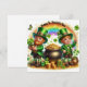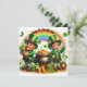 Feliz cartão de férias do Dia de São Patrício com Leprechauns, Trevos, Potes de Ouro, Flores, Trevos, Borboletas e um Arco-íris
