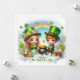Feliz cartão de Natal do Dia de São Patrício com um menino e uma menina fofos usando chapéus de Leprechaun, panela de ouro, trevos e um arco-íris
