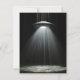 Feliz cartão do Dia Mundial OVNI. A frente é uma ilustração de espaçonave de alienígena OVNI. O texto de trás diz: Feliz Dia Mundial da OVNI!