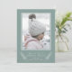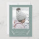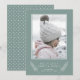 Um cartão com fotos de férias chic com galhos festivos ilustrados e um espaço reservado para sua foto em um fundo verde mudo. Altere o texto para a sua frase ou mensagem de feriado especial. A parte traseira apresenta um padrão de bolinhas na moda. Design pelo The Spotted Olive. Design Copyright © The Spotted Olive. Todos os Direitos Reservados.