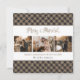 A feliz rustica de fotos da xadrez personalizada e os cartões de Natal casados, com um fundo de xadrez preto e de búfalos de neve, com 3 fotos no meio, e um belo título de roteiro escrito à mão acima. Personalize facilmente este cartão de Natal de xadrez rústico com as suas imagens, texto e nome da sua família.