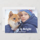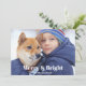 A Feliz do nome da família de fotos e o cartão de feriado Brilhante são fáceis de personalizar. Substitua a foto por sua e personalize o texto.
