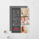 Um doce desejo de Feliz e Natal Brilhante é enviado com este design moderno com uma adorável inscrição manual e destacado por um conjunto ilustrado de vermelho e verde contra uma cinza com espaço para três fotos da sua família. Uma saudação contemporânea encantadora e divertida para enviar a família e amigos nesta temporada de festas.