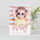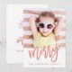 Cartão com fotos popular de feriado moderno por Elke Clarke © com uma bela letra de escrita com a palavra "feliz" num falso efeito de folha de ouro rosa.