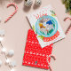 Celebre a época mágica e festiva de feriado com nossos cartões com fotos de feriado. Nossa design de feriado festiva mostra nosso próprio globo de neve desenhado à mão. Dentro a ilustração do globo da neve são árvores esmagadas e verdes adornadas com luzes de natal e neve mágica caindo. Coloque sua própria imagem dentro no globo da neve. O reverso do cartão com fotos de férias foi concebido para se assemelhar a um suéter de malha de Natal vermelho e branco, que gravatas perfeitamente o suéter de malha na base da ilustração do globo da neve. Todas as ilustrações contidas neste cartão com fotos festivo são obras de arte originais desenhadas à mão pela Moodthology. Você pode personalizar o tamanho do texto, a cor do texto, a fonte e o layout para sua preferência de design pessoal.