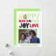 Adicione sua própria foto e saudação personalizada a este cartão moderno e tendência para as festas de Kwanzaa. Confira o design de paz, amor e alegria no verso! É divertido e moderno, as cores tradicionais do Kwanzaa, verde, vermelho e preto, e uma espiga de milho. Você consegue ver?