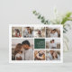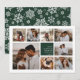 O moderno cartão de colagem de fotos de Natal apresenta oito fotos organizadas em um layout de grade, com sua mensagem de feriado pessoal e nomes em branco, em verde-caçador. Um design simples e mínimo que mostra suas fotos favoritas. Cartões invertendo para um padrão verde escuro e branco de flocos de neve.