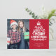 Cartão de cartões de natal moderno, personalizável com um dos seus retratos de Natal favoritos na frente, ao lado de uma adorável legenda de letras brancas que diz "nós desejamos um feliz Natal" sobre um fundo vermelho comum. No verso do cartão, você pode carregar mais duas fotos e sua mensagem pessoal de saudação.