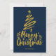 Feliz Natal na fonte decorativa com estilo de escrita com um esboço de uma árvore de Natal e estrela no design. Esta placa de Natal azul escura foi projetada para que você possa mudar a cor do fundo, dos gráficos e também digitar o nome da sua família.
