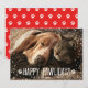Mostre seus adoráveis animais de estimação com um Cartões de foto de Natal Feliz de Feliz Feliz Feliz Feliz Feliz. O cartão com fotos de feriado apresenta uma camada de borda de neve, impressões de pata, as palavras "Feliz Natal" e um espaço reservado para texto personalizado e a foto do seu animal de estimação. A parte traseira tem um padrão de impressão de pata vermelha e branca.