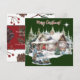 Feliz Natal do Cartão de Férias de Cabina. Do nosso inverno na Coleção de Cabina. Cabine de bordo com veados e ursos com vista para cima. Estrela de Belém brilha intensamente. Um caminhão vintage é carregado com presentes e decorações para o dia especial. A cabine está acesa para os convidados esperados. Quente e confortável. "Feliz Natal!" "Desejando-lhe todo o conforto e alegria da temporada!" Personalize com o nome da sua família ou exclua e adicione sua mensagem pessoal.