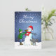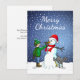 Feliz Natal do boneco de neve, menino e cão num cartão de Natal.