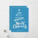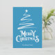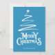 Feliz Natal na fonte decorativa com estilo de escrita com um esboço de uma árvore de Natal e estrela no design. Este cartão de Natal de cor de fundo azul foi projetado para que você possa mudar a cor do plano de fundo e também digitar seu nome de família.