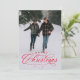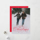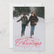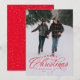 "Feliz Natal" num tratamento elegante vermelho sentado no topo de uma foto vertical solteiro. Este cartão clássico é a forma perfeita de enviar Cartões de natal para amigos e familiares. O dorso é um vermelho festivo manchado com um padrão de neve. A cor vermelha pode ser alterada clicando em "personalizar mais".