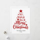 Desejamos a você um Feliz Natal em letra estilo script em forma de árvore num cartão branco de Natal. Você pode alterar a cor do fundo e também do gráfico principal, assim como o nome da família, o texto do ano.
