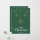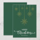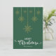 Feliz Natal Verde com roteiro decorativo de rico e flocos de neve de ouro pendurados design. Este cartão de Natal verde é projetado para que você possa mudar a cor do fundo. Você também pode digitar seu nome de família ou removê-lo se quiser apenas ter o design sem o texto. Você também pode personalizar a cor das palavras "Feliz Natal" editando este design, se quiser.