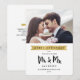 Recém-fiados! Envie este cartão de Natal perfeito como foto para os futuros Sr. e Sra. O design apresenta uma bela tipografia em estilo de letra à mão com um banner de fita em folha de ouro falso sob as palavras "Feliz Natal". Na parte frontal, o design também deixa espaço para uma foto. No verso do cartão, o design apresenta espaço para saudações que podem ser personalizadas ou removidas completamente para dar espaço para escrever saudações pessoalmente. Personalize o design substituindo a foto e o texto de exemplo.