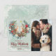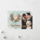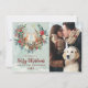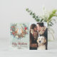 Um moderno cartão de natal de design de fundo floral e nevado com raposas bonitinhas e um lado inverso coordenado. Fácil de editar ou excluir os campos de texto na parte frontal para atender às suas necessidades pessoais e mudar a foto para a sua.