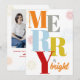 O cartão de Natal Mínimo e Brilhante apresenta uma design de tipografia ousada com a palavra 'Feliz' num tema azul, laranja, cinza, vermelho e amarelo. Adicione sua própria foto e mensagem à parte traseira do cartão. Altere as cores ou mantenha-as como mostrado aqui. Navegue na coleção de cartões de Natal para obter mais designs.