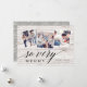 O cartão com fotos de Natal russo apresenta três fotos quadradas em um layout de colagem, com "tão feliz" é sobreposto em um roteiro preto e letras de blocos. Personalize com sua saudação personalizada e seu(s) nome(s) à direita, em um fundo pálido de prancha russa de madeira. Cartões invertendo para um fundo botânico neutro e padronizado.