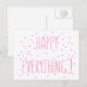 NewParkLane - Cartão postal, com uma citação divertida de "tudo feliz" a rosa, na tipografia moderna, com estrelas cintilantes. Um cartão versátil para diferentes ocasiões; aniversários, Ano Novo, casamentos e outras celebrações! Cartões correspondentes, selos postais e outros produtos estão disponíveis nesta loja.