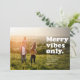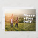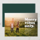 Envie alegria retrógrada divertida com este cartão com fotos que apresenta uma peça sobre "apenas boas vibrações" com "apenas vibrações felizes" mais festivas. O texto branco fica à direita de uma foto horizontal solteiro com bastante espaço para texto e nomes personalizados. A parte de trás é uma engraçada e festiva selva verde-da-selva com uma textura angustiada. A cor pode ser atualizada clicando em "personalizar mais".