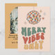 Este cartão de feriado retro apresenta uma bola festiva de discoteca e um emparelhamento de fontes groovy. As palavras "apenas vibrações de feliz" não podem ser alteradas, mas as cores do texto podem ser alteradas. A parte traseira deste cartão de feriado permite adicionar sua própria foto e texto especiais.