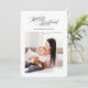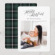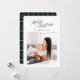 Feliz cartão com fotos de Natal. Um design elegante moderno deu uma reviravolta rústica e tradicional com xadrez de trás. Parte de uma coleção.