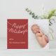 Feliz feriado escrito em luzes cintilantes acentua sua foto de família neste cartão de saudação. Role para baixo para ver o selo de coordenação.