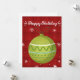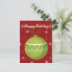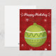 Cartão de feriado feliz, vermelho e bonito, com ornamento verde! Aproveite!
