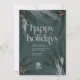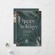 Este cartão de feriado da empresa que não é fotográfico apresenta uma festiva fronteira de agulhas de pinheiros e bagas de inverno que enquadra uma mensagem de Feliz feriado. A frente destaca o logotipo da empresa e a mensagem de gratidão. A parte traseira apresenta uma foto da empresa, um logotipo e espaço para uma mensagem adicional.