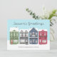 Celebre as férias enviando este cartão fofo com uma pequena cidade adornada com coroas recebendo uma camada fresca de neve. Personalize adicionando sua foto favorita.