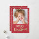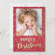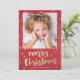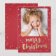 Um Cartões de foto de Natal cômico com fundo vermelho textural com pontos de confetti dispersos em ouro e modernos esfregados, alegres letras de Natal e padrão de backer correspondente. Parte da coleção Confetti Wonderland de Stacey Meacham. Enumerar a loja Stacey Meacham para coordenar produtos como envelopes, selos, etiquetas de endereços e mais.