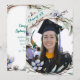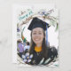 Cartões com fotos de graduação para a graduação do segundo grau de uma filha. Use como um anúncio e/ou convite de festas. Tema da natureza, com folhas pintadas e flores que fazem uma coroa ao redor de sua foto na frente. Inclua "classe de" com ano e personalize o texto no verso para "parabéns com nome" e todas as informações da casa aberta ou da parte, conforme necessário. Comprar como um download instantâneo e anúncios digitais enviados.