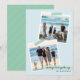 O cartão apresenta dois espaços para fotos quadradas desalinhadas "colados" com fita washi listrada diagonal verde e branca em um fundo azul gelo.