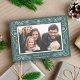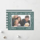 Mande seu amor nos feriados com nosso elegante cartão com fotos da Floresta Encantada. Uma intrincada borda botânica em branco nevado em uma tela verde acinzentada de fundo, sua foto horizontal favorita neste chic e elegante cartão de feriado. Personalize com sua saudação personalizada (mostrada com "Feliz Natal") e seu nome e ano de família.