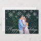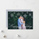 Um design elegante e clássico de cartão de feriado com um cheio sangrando fotos horizontais ou paisagísticas, com borda de floco de neve no topo. "Feriados Felizes" aparece no roteiro de caligrafia tradicional. Personalize com o seu nome de família e o ano em letras brancas no canto inferior direito, e adicione uma segunda foto no verso.