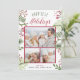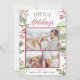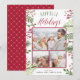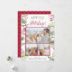Cartão com fotos festivo apresenta bagas de aquarelas pintadas, folhas e galhos, ao redor de três de suas fotos favoritas em uma colagem. "Feriados Mais Felizes" aparece no topo em blocos e tipografia de script, com letra vermelha e verde. Personalize com sua saudação e nomes personalizados na parte inferior.