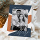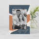 Design de férias moderno, com abstrato em forma pintada em marinho e ferrugem com fundo creme. A palavra "Feliz" é exibida em um roteiro de caligrafia branco e elegante. Personalize o cartão de feriado de abstrato, adicionando seu sobrenome e uma foto favorita. A placa reverte para um plano de fundo do traçado do pincel do marinho.