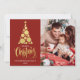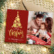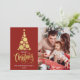 Feliz Natal foto da família Red Holiday Card Feliz Natal! Este cartão com fotos de Natal apresenta uma mensagem clássica com uma forma divertida de árvore de Natal. Com uma foto na frente e outra atrás, é uma forma excelente de enviar alegria de Natal para amigos e familiares.