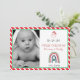 Um cartão de Natal bonito e caprichoso para mamães e pais do bebê, com Papai Noel e arco-íris de Natal. Adicione o nome do seu bebê. Listras de canas brancas e vermelhas na parte de trás do cartão.