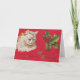 Festividades Gato branco vitoriano e cartão de Natal Holly