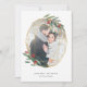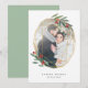 Cartões de natal geométricos elegantes apresentam seu conjunto de fotos favorito dentro a gemstone inspirado em folha de ouro falso, acentuado com folhas de cor aquática verde e bagas vermelhas. Personalize com seus nomes e um cartões de natal personalizado curto (mostrado com "amor e alegria") e adicione duas fotos adicionais às costas, juntamente com o ano.