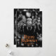 Feliz cartão de Halloween com uma aranha assustadora na web. Personalize facilmente este cartão de Halloween com seu nome de família e texto.