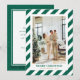 Elegante foto verde Feliz Cartão de Natal com listras modernas, flocos de neve e estrelas. Personalizar facilmente online.