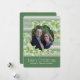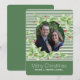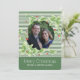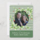 Cartão de saudação festivo e plano de natal feito em um padrão verde e branco de faixa horizontal, com um recorte redondo para sua fotografia. Gráficos de bonito verde-claro com bagas vermelhas, decorados em volta da área de figura. Personalize o texto branco, na parte inferior do cartão, e adicione sua própria fotografia. Os produtos correspondentes estão disponíveis.